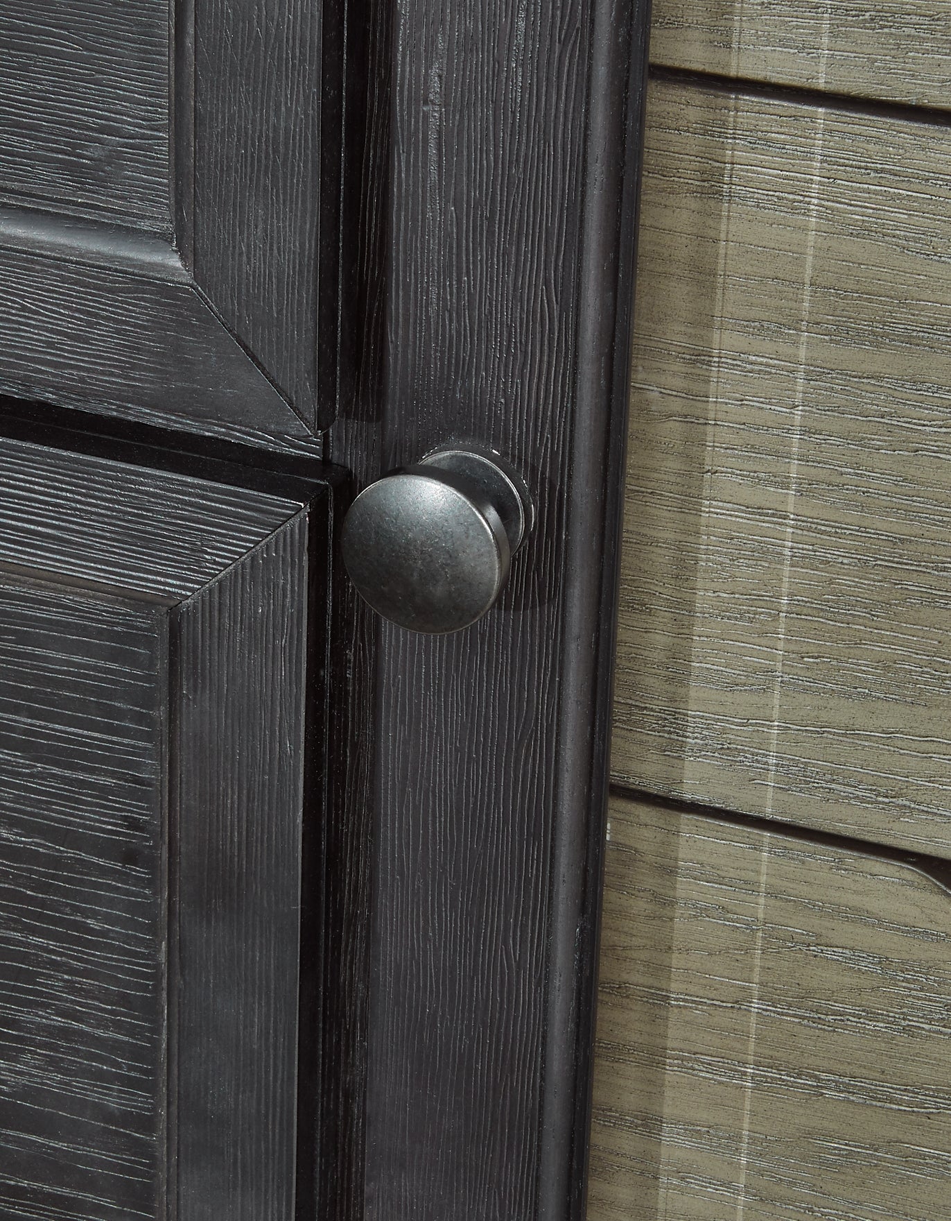 | Details | B989B5: Includes California king panel headboard, storage footboard, and rails with roll slats, Made with hardwood solids, select oak veneers and engineered wood, Two-tone finish (brushed black and dusty grayish brown wood tone), Headboard with picture frame moulding, Footboard with two deep drawers, Smooth-gliding soft-close drawers with fully finished interiors and dovetail construction, Sleek drawer pulls with black finish, Bed does not require additional foundation/box spring; accommodates most zero clearance adjustable bases with the addition of a bunkie board, Mattress available, sold separately, Assembly required, B989B1: Includes dresser and mirror, Made with hardwood solids, select oak veneers and engineered wood, Two-tone finish (brushed black and dusty grayish brown wood tone), Sleek drawer pulls with black finish, 11 soft-close, smooth-gliding drawers with fully finished interiors and dovetail construction (top drawers felt lined), 5 drawers with brushed black finish; 6 drawers with grayish brown wood tone, 3 drawers located behind each door, Mirror mounts to back of dresser, Assembly required, B989-48: Made with hardwood solids, select oak veneers and engineered wood, Two-tone finish (brushed black and dusty grayish brown wood tone), Sleek drawer pulls with black finish, 5 soft-close, smooth-gliding drawers with fully finished interiors and dovetail construction (top drawers felt lined), 3 pull-out trays (felt lined) and 2 adjustable shelves behind door, B989-92: Made with hardwood solids, select oak veneers and engineered wood, Two-tone finish (brushed black and dusty grayish brown wood tone), Sleek drawer pulls with black finish, 2 soft-close, smooth-gliding drawers with fully finished interiors and dovetail construction, 110V power supply with dual USB charging port, Power cord included; UL listed, | |