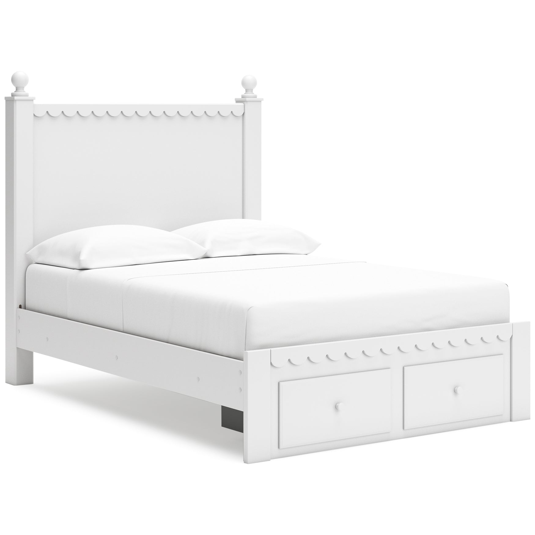 Make morning or bedtime that much more magical with this bedroom package. Charmingly cute with its scalloped detailing, it appeals to both her sense of playful whimsy and your love for modern design. A crisp white finish gives you the versatility to pair the set with existing decor.