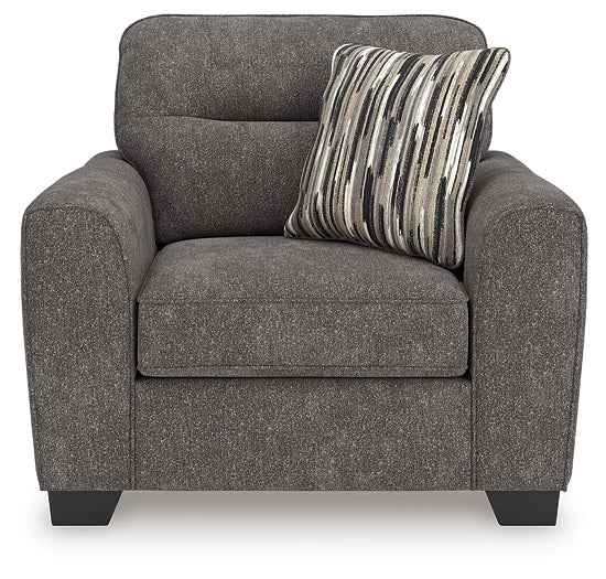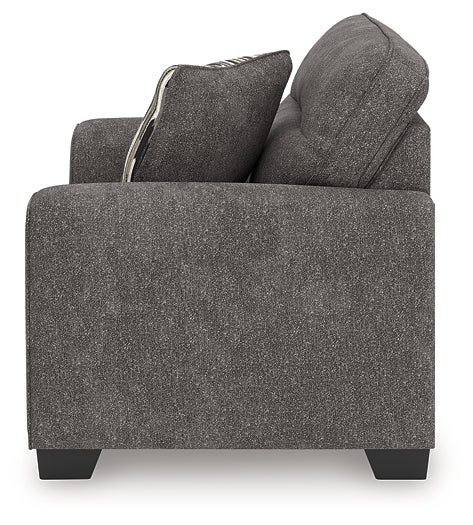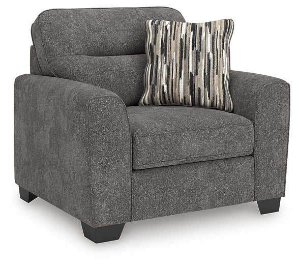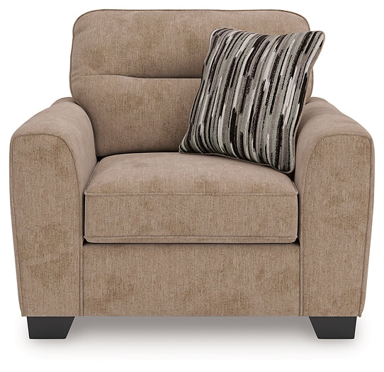 Details Corner-blocked frame, Attached back and loose seat cushions, High-quality foam cushions wrapped in poly fiber, Accent pillow included, Pillow with soft polyfill, Polyester upholstery, Exposed feet with faux wood finish, Platform foundation system resists sagging 3x better than spring system after 20,000 testing cycles by providing more even support, Smooth platform foundation maintains tight, wrinkle-free look without dips or sags that can occur over time with sinuous spring foundations