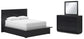 Details | B768B2: Includes headboard, footboard and rails, Made with pine solids, veneers and engineered wood substrate, Textured black wood stain with waxy topcoat, Extra wide rails for a bench-like wrap around, Foundation/box spring required, sold separately, Mattress available, sold separately, Assembly required, B768B1: Includes dresser and mirror, Made with pine solids, veneers and engineered wood substrate, Textured black wood stain with waxy topcoat, Hardware-less design, 6 drawers with fully finished interiors, dovetail construction and ball-bearing side glides (top drawers felt lined), Mirror attaches to back of dresser, | |